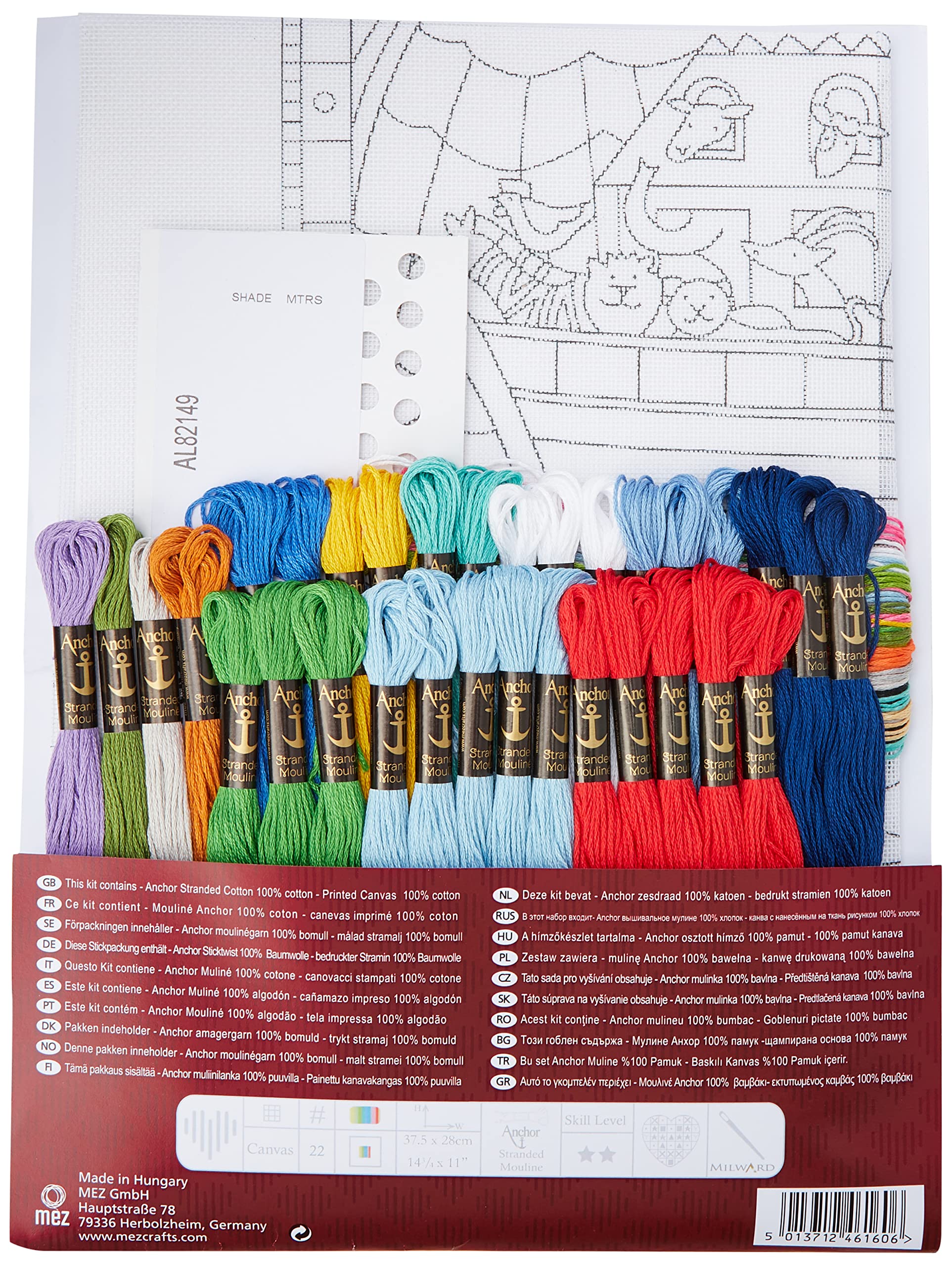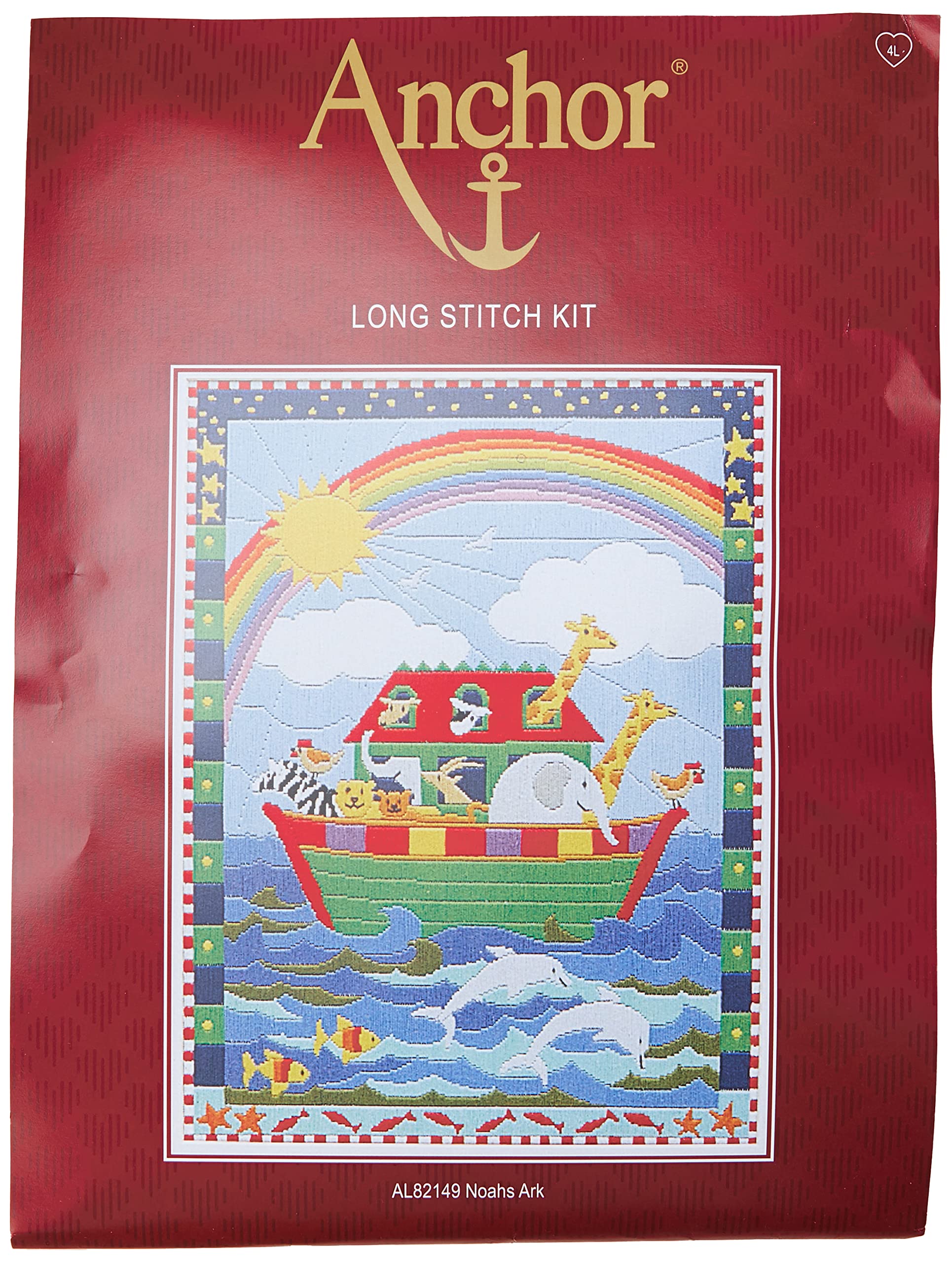 Details: Product Description Anchor Noahs Arc Long Stitch Kit. Anchor Noahs Arc Long Stitch Kit. A bright and colourful design of Noahs Arc on the water under a rainbow. Kit contains carefully sorted Anchor Stranded Cotton, 22 count outline printed canvas, a needle and easy to follow chart and instructions. Finished: size 14 3/4" x 11" (37. 5cm x 28cm). Safety Warning Unsuitable for under 3 years. Box Contains 1 x See Product Specification