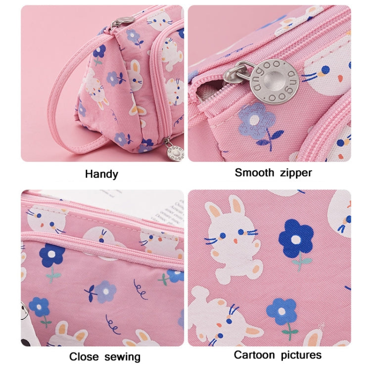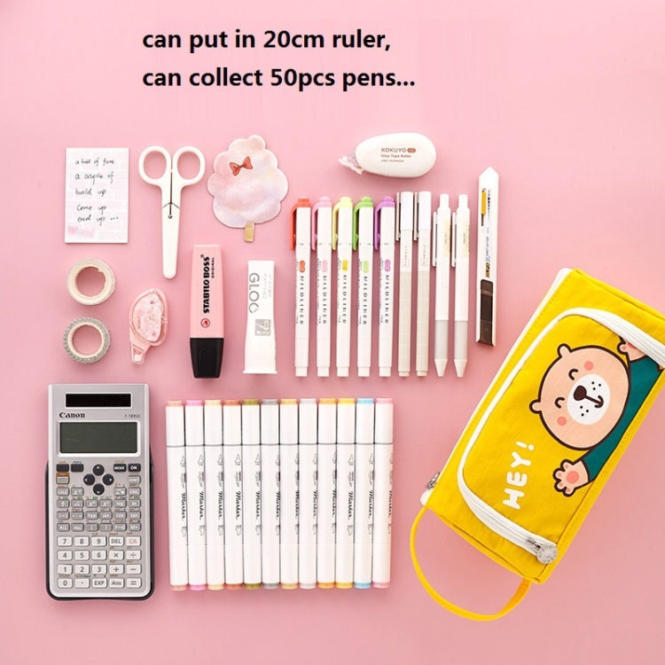 Angoo Canvas Large-Capacity Stationery Case With Side Window Student Pencil Storage Bag(Beckoning Bear)