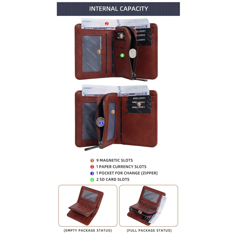 Baellerry DR113 RFID Anti-Theft Retro Multi-Card Slot Tri-Fold Short Wallet(Black)