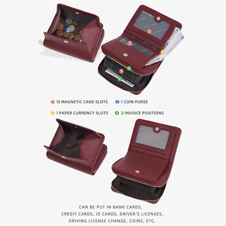 3. 15 magnetic card slots, 1 coin pocket, 1 bill slot, 2 receipt pockets