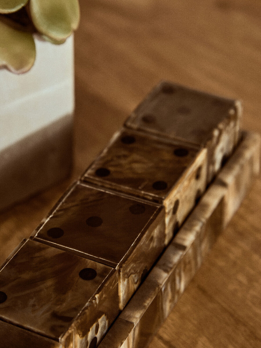 The smooth resin finish ensures comfortable handling during play, while the balanced weight makes every roll satisfying. The matching tray not only organises the set but also serves as a chic decorative element on coffee tables, game shelves, or study desks.