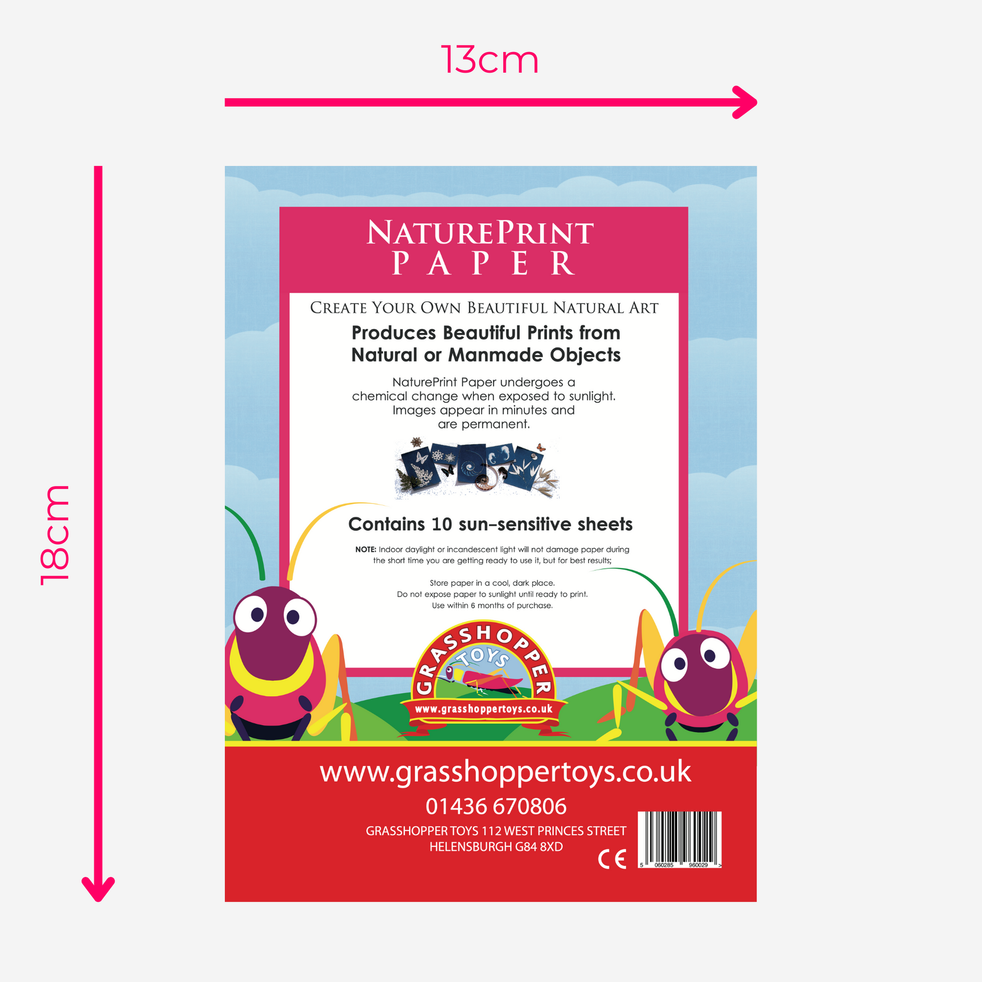 Each pack contains 10 x sheets 18x13cm of light sensitive sun print paper.