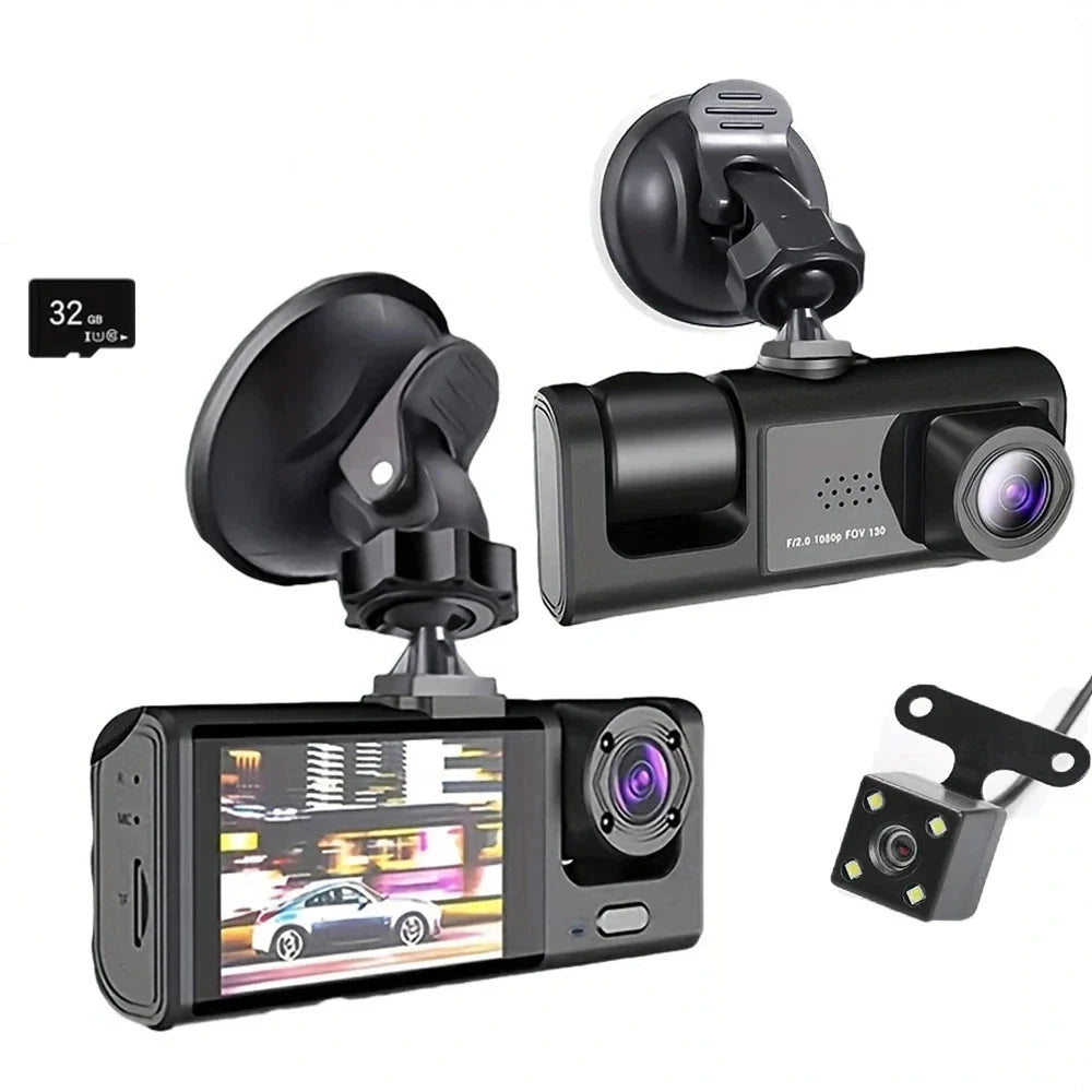 - Triple Camera Setup: Includes three cameras – front, interior, and rear – to provide a comprehensive view of the road and the car's interior.