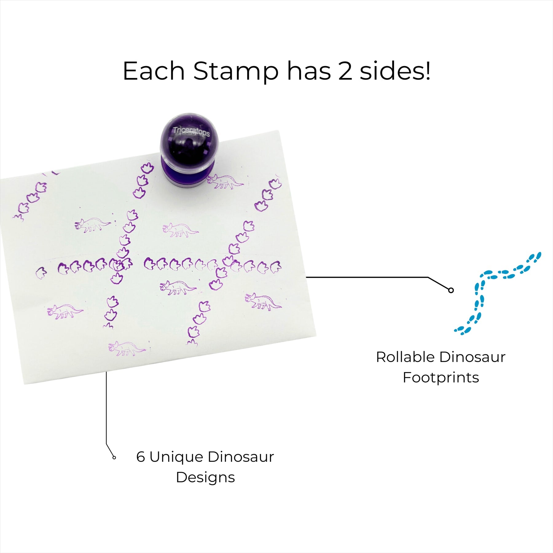 These fun Dinosaur stampers are comprised of a base end which stamps out the dinosaur and a top end which is a roller stamp that prints the dinosaur's footprint.