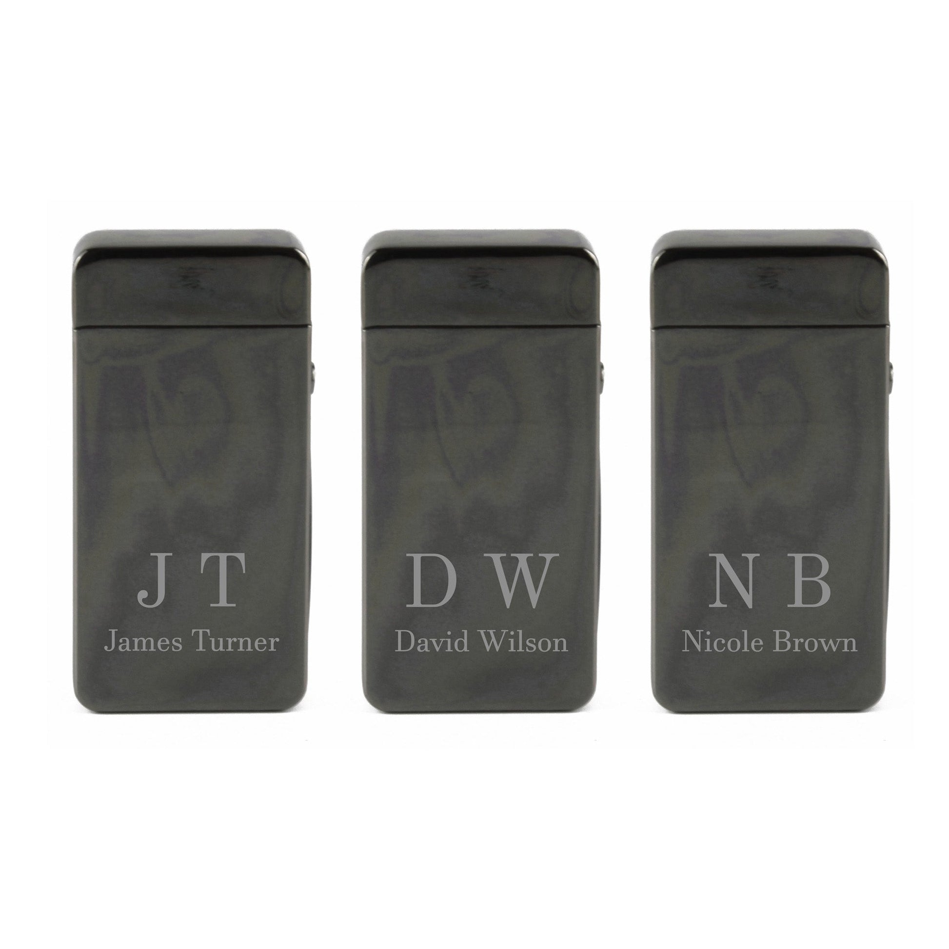 Engraved Electric Arc Lighter, Black, Initials, Gift Boxed