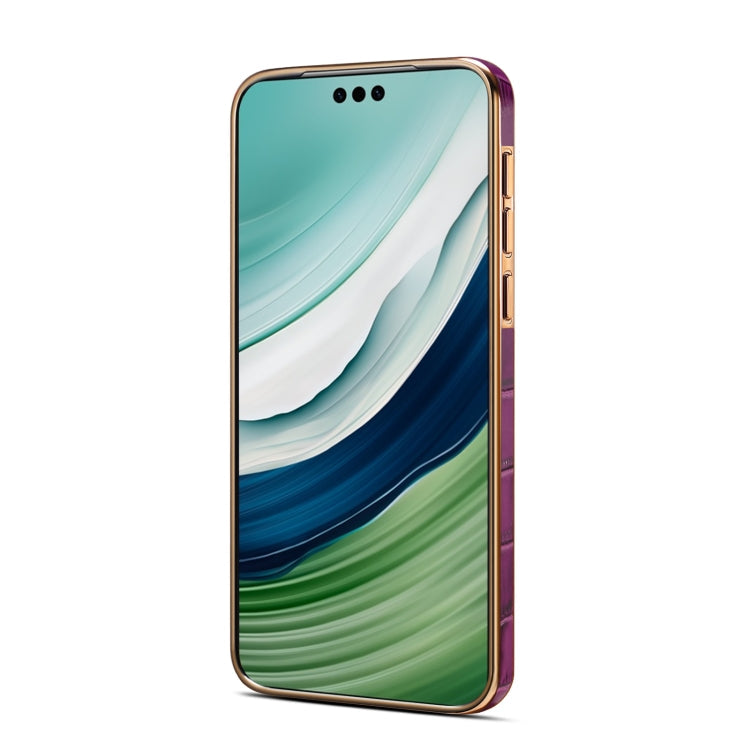 For Huawei Mate 60 Denior Crocodile Texture Genuine Leather Electroplating Phone Case(Purple)