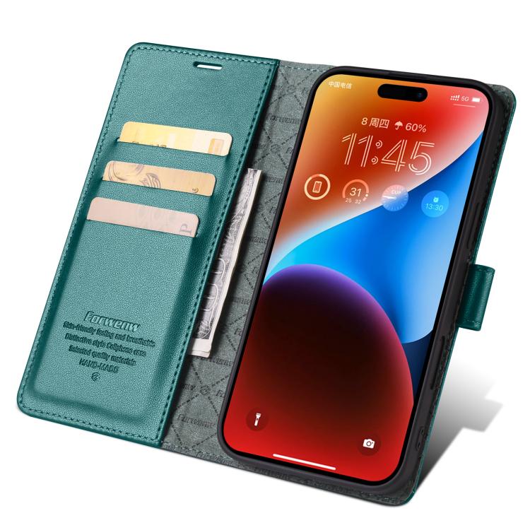 For iPhone 16 Forwenw F6 Series RFID Leather Phone Case(Green)