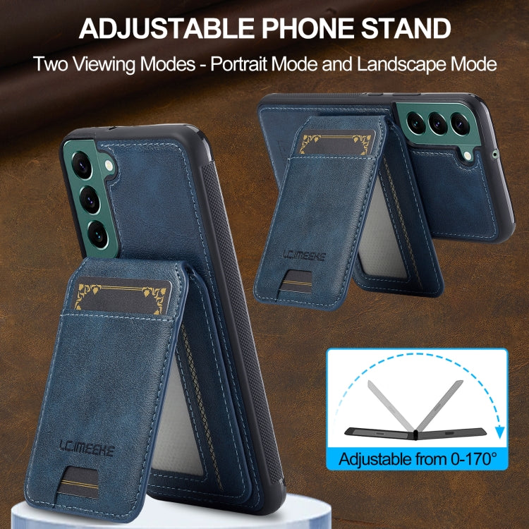 For Samsung Galaxy S22 5G LC.IMEEKE L3 Series Detachable RFID Card Bag Magsafe Phone Case(Blue)