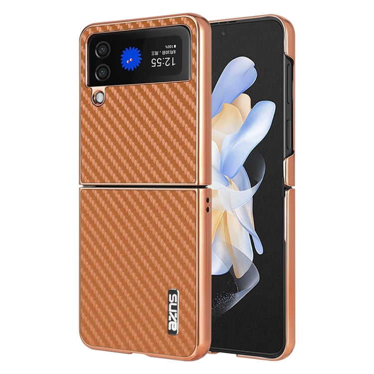 For Samsung Galaxy Z Flip3 5G AZNS Electroplated Edge Carbon Fiber Texture Phone Case(Brown)