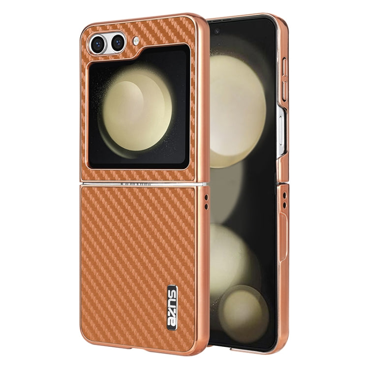 For Samsung Galaxy Z Flip5 5G AZNS Electroplated Edge Carbon Fiber Texture Phone Case(Brown)