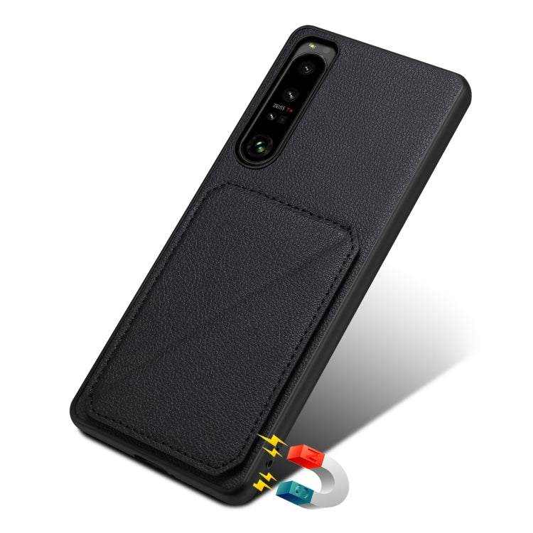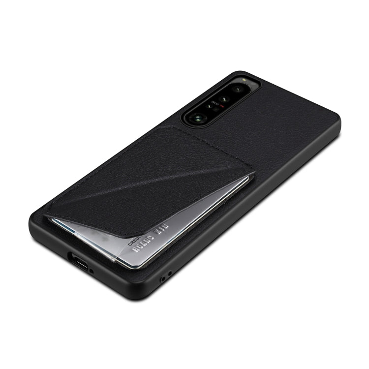 For Sony Xperia 10 IV Denior Imitation Calf Leather Back Phone Case with Holder(Black)