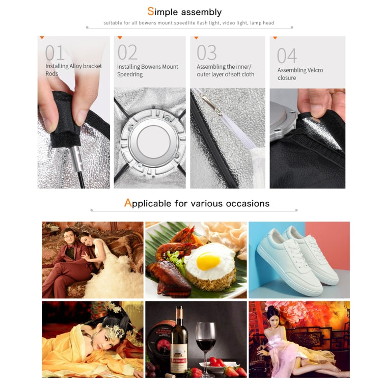 6. The soft box is black on the outside and silver on the inside, with uniform coating and high reflectivity.