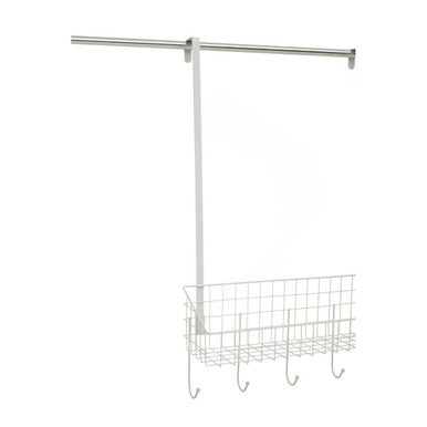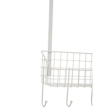 Crafted from strong iron in a smooth white finish, the frame resists marks and everyday wear, helping it stay bright and presentable. The elevated shelf keeps lightweight accessories neatly in view, while five additional hooks below provide dependable hanging for coats, scarves, towels, belts and handbags. Rounded wire ends and a polished coating help protect fabric and door panels, so you can organise with confidence. The slim profile lets the door open and close comfortably, making it a natural fit for compact rooms and rental spaces where permanent fixtures are not desired.