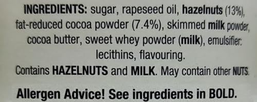 Details: Description Product Description Kirkland Signature Hazelnut Chocolate Spread with Cocoa Jars x 1kg Kirkland Signature Hazelnut Spread has an alluring, silky smooth blend of chocolate, skimmed milk, hazelnuts and sugar. This creamy hazelnut spread will melt in your mouth, when eatern right out of the jar, but you can also use the spread to elevate some of your dishes to become even more craveable. Use in your protein shakes, in breakfast oats, on waffles and crepes, or even in your coffee and hot chocolate to make them that little bit sweeter and leaving you wanting more. Enjoy Kirkland very own imitation of the famous Cocoa Chocolate Spread (Taste wonderful just like Nutella !) This Hazelnut Spread with Cocoa is delicious to enjoy in sandwiches, crepes, waffles, ice cream sundaes, or even straight out with a spoon! It comes in a pack of two mega jars, so you'll be sure to enjoy it for a long time. Ingredients: Sugar, Sunflower Oil, Hazelnuts (13%), Fat Reduced Cocoa Powder (7.4%), Skimmed Milk Powder, Cocoa Butter, Whey Powder, Coconut Oil, Emulsifier (Sunflower Lecithins), Flavouring. Features: A luxurious spread mix of cocoa and hazelnuts Palm oil free 35.2 oz. Plastic Jar Perfect on breakfast toast bagel, crepes, pretzels, and sweet strawberries Great for crepes and for baking muffins with gooey filling Suitable for vegetarians Dietary Features as Trans Fat Free Kosher Manufacturer Contact Information Kirkland Signature