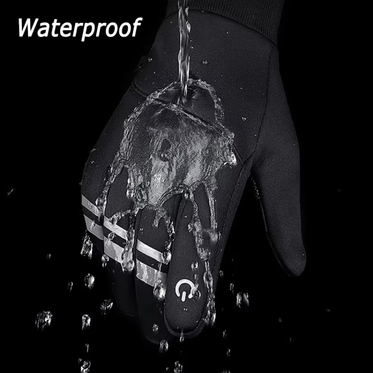 Kyncilor Velvet Warm Cycling Gloves Reflective Touch Screen Ski Water-repellent Elastic Gloves, Size: XL(Black)