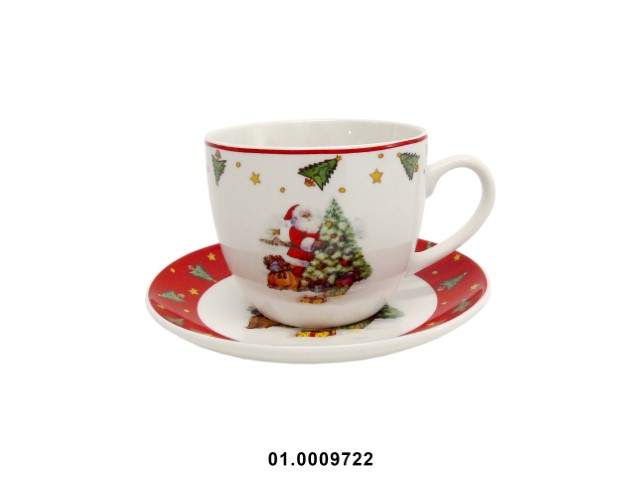 PORCELANA - SET OF 2 TEACUPS WITH SAUCER "CHRISTMAS" 250CC 9X8CM