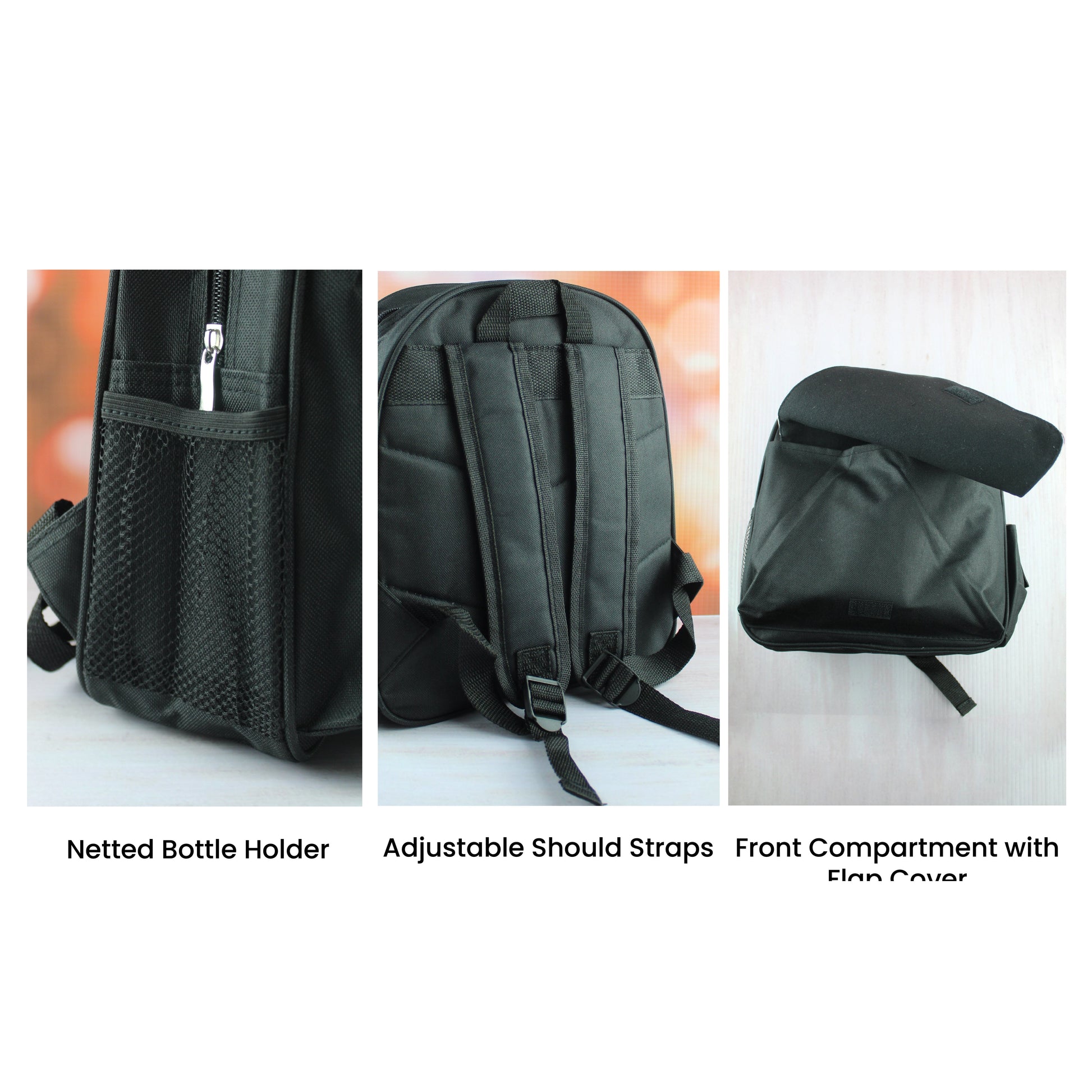 This adorable backpack is a conventional black tone, exuding charm and capturing the imagination of toddlers and young children alike. Measuring approximately 33cm x 31cm x 8cm, it's designed with just the right dimensions to comfortably hold their treasures without feeling bulky. Crafted with convenience in mind, the backpack boasts adjustable shoulder straps, ensuring a snug and secure fit for your little one. The top loop is a handy addition, allowing the backpack to be easily hung up on hooks, keeping it off the floor and well-organised when not in use. The main compartment is secured with a sturdy zip, providing easy access to the backpack's contents while ensuring everything stays safely in place during adventures. For added versatility, a secondary compartment sits beneath a flap, which can be fully removed and secured with velcro. The flap itself features a colourful, eye-catching comic book design, presenting the personalisation in a flashy style. Sparking creativity and a sense of ownership, the personalised touch of adding a name makes this backpack unique to each child, fostering a stronger connection and sense of excitement for their little journeys. Safety and hydration go hand in hand with this thoughtful design. On either side of the backpack, you'll find a netted bottle holder and side pouch. These convenient holders are ideal for carrying water bottles and snacks, encouraging healthy habits and keeping kids energized during playtime. Crafted from durable materials, this backpack is built to withstand the energy of curious explorers, ensuring it stands the test of time. Whether it's a day at preschool, a family outing, or a spontaneous adventure, this backpack is the perfect blend of style, functionality, and personalized charm. So, let your child's imagination run wild as they carry their world on their shoulders with this delightful, blue personalised Kids' Backpack. It's time to create lasting memories, one adventure at a time!