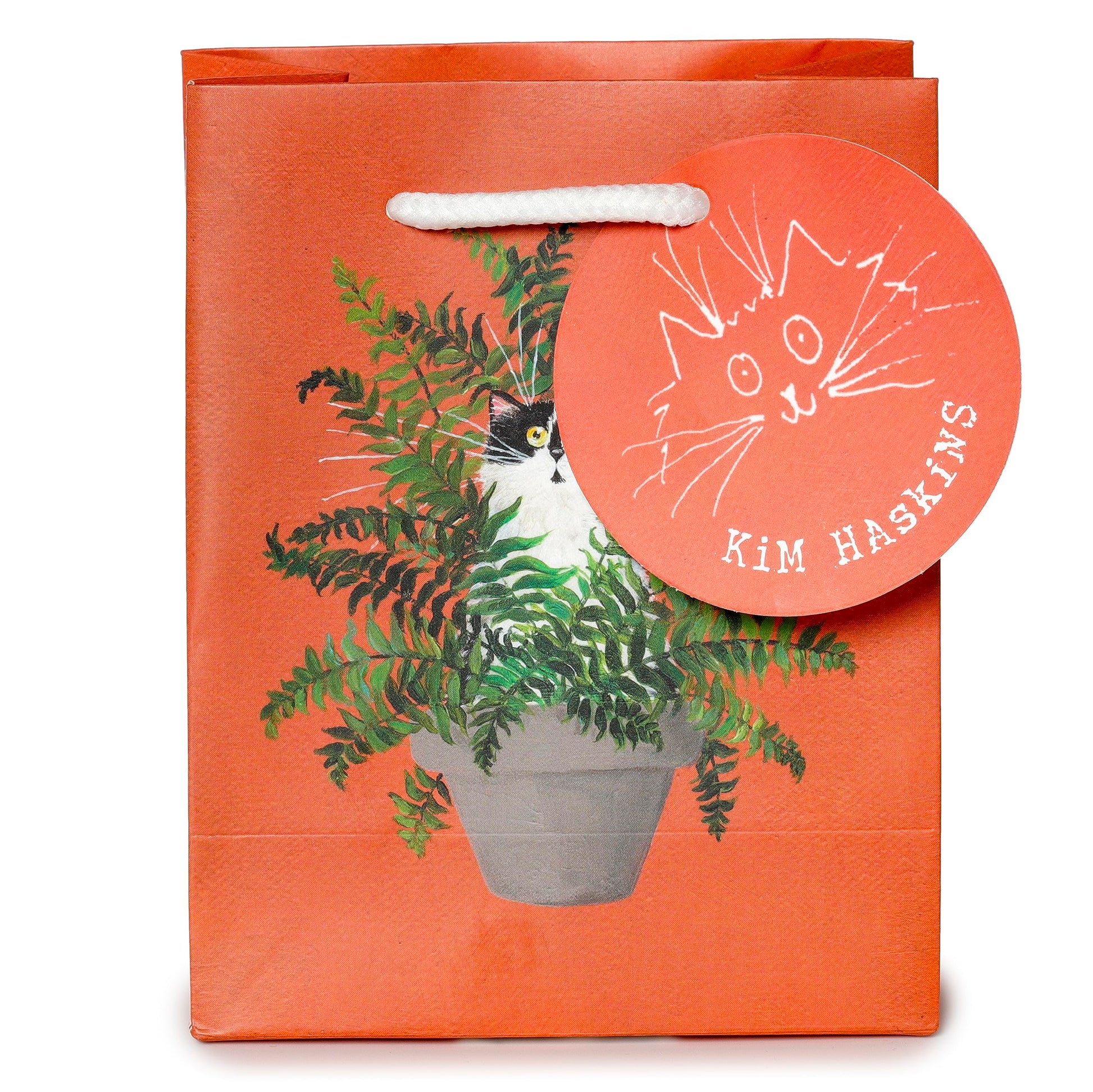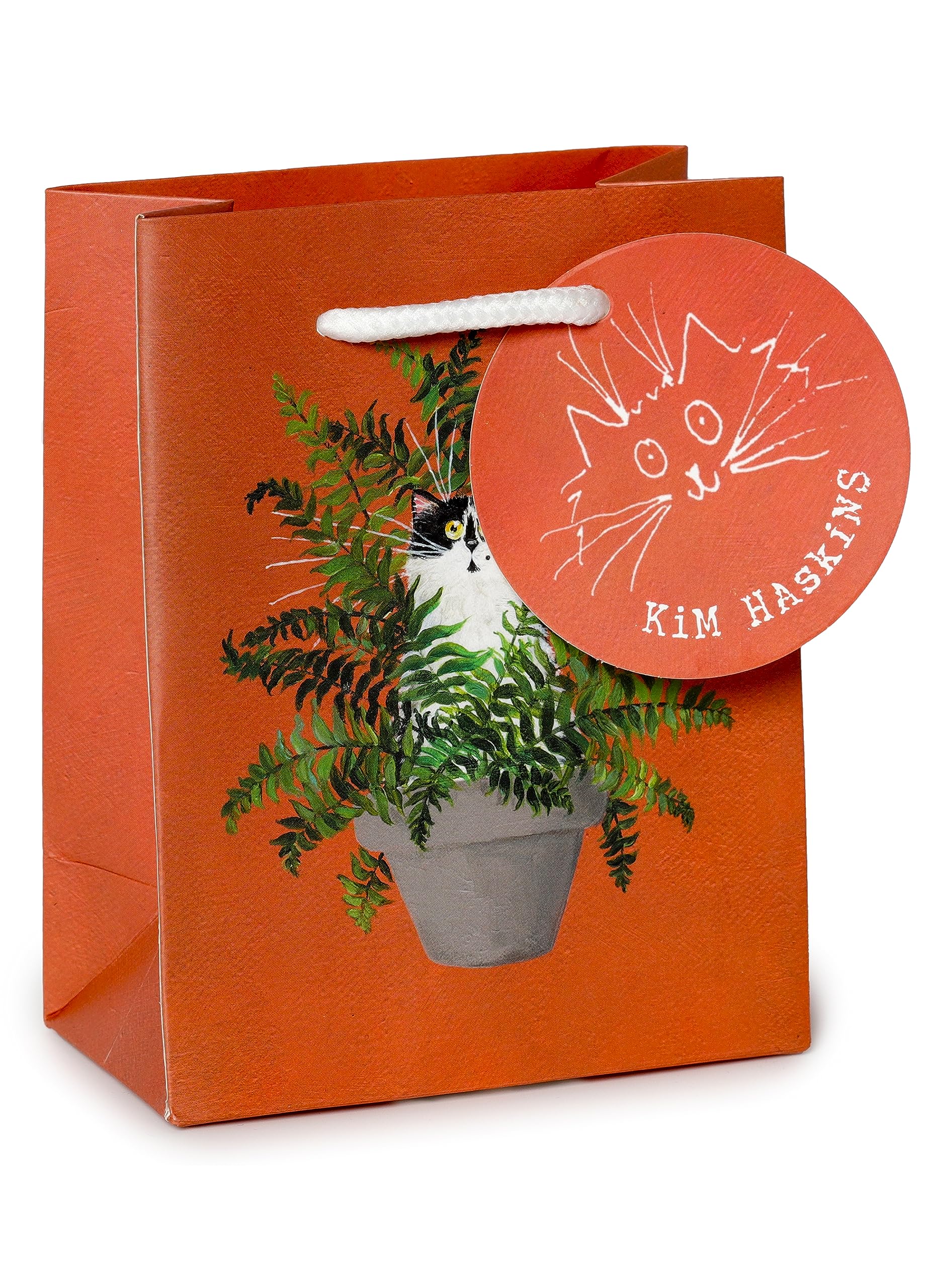Puckator Kim Haskins Floral Cat in Fern Red Gift Bag - S - Birthday Gift Bag - Gift Bag For Presents - Present Bag For Females - Kids Birthday Presents - Present Bags For Gifts - Gift Box For Baby