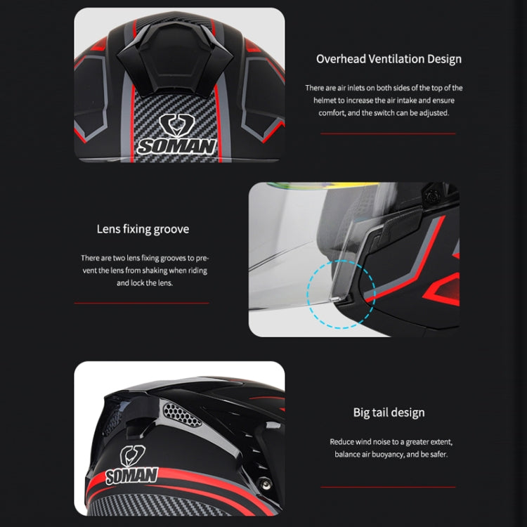 SOMAN Motorcycle Electric Bicycle Dual Lens Riding Helmet, Size: S(Black Red)